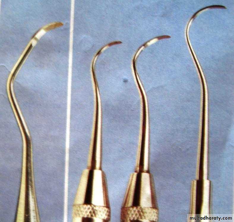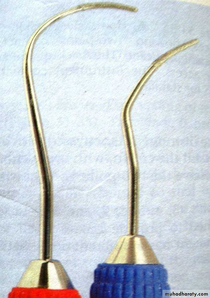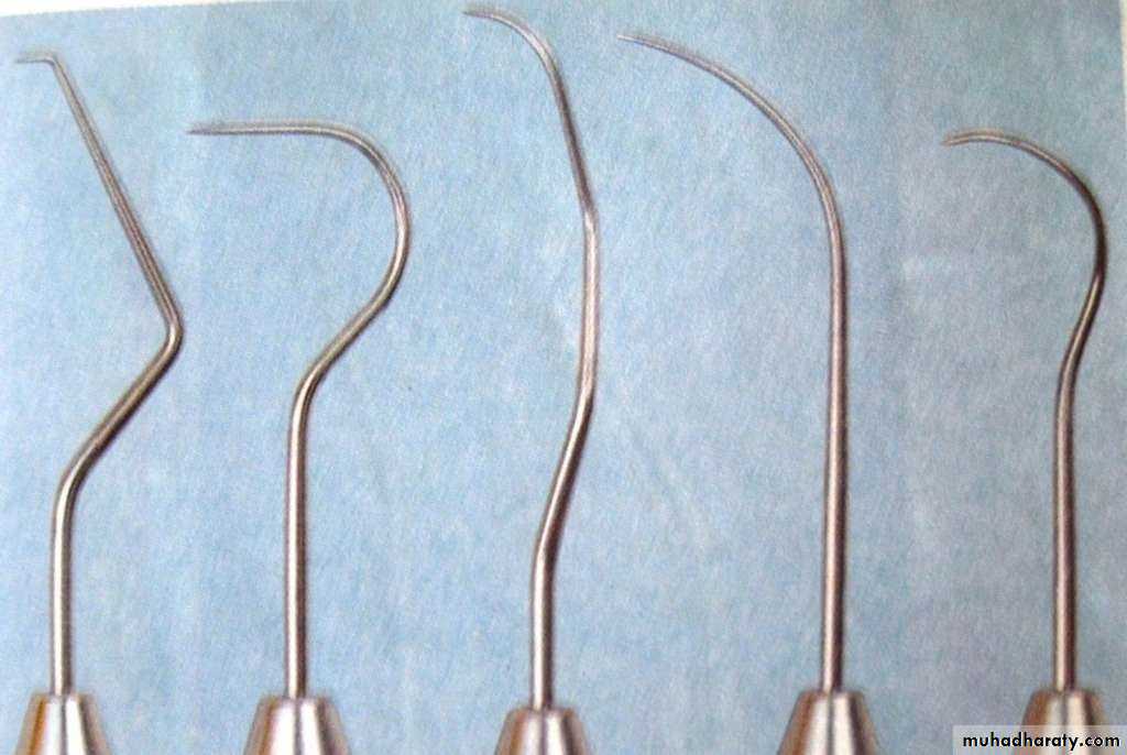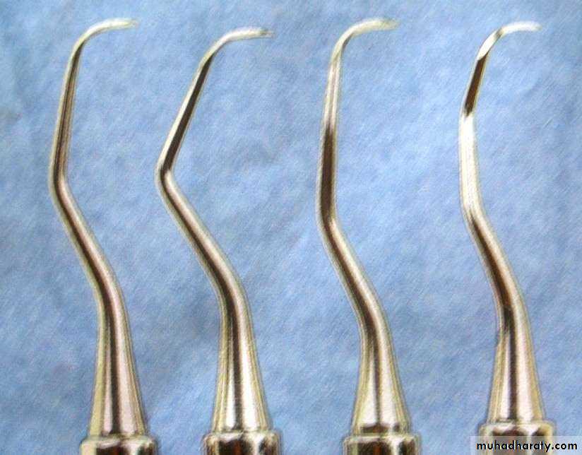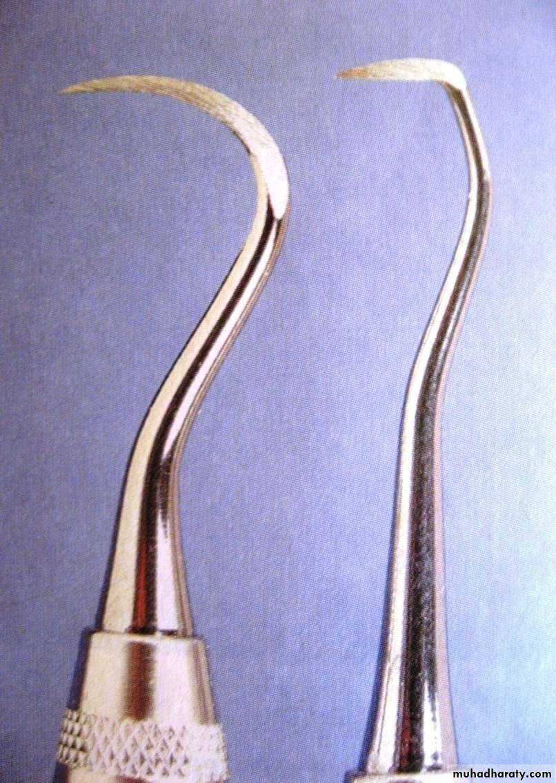 • Curettes- for subgingival scaling, root planing and removal of the soft tissue lining the pocket