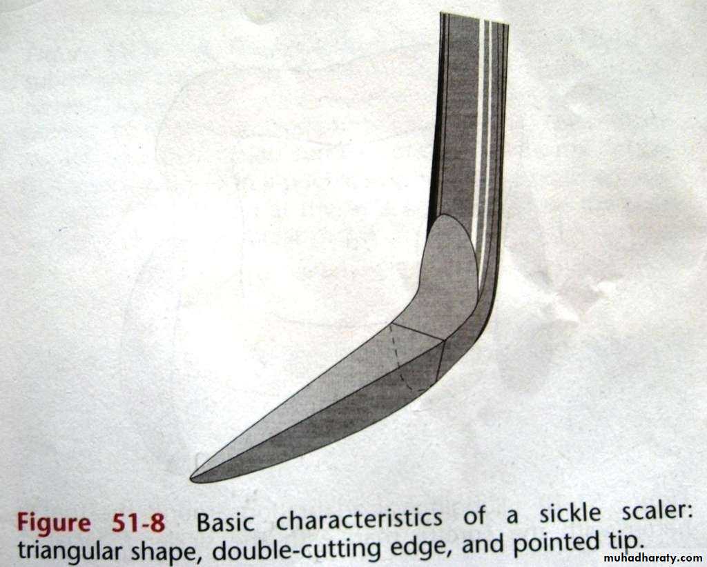 • Sickle scalers with straight shanks are designed for use on anterior teeth