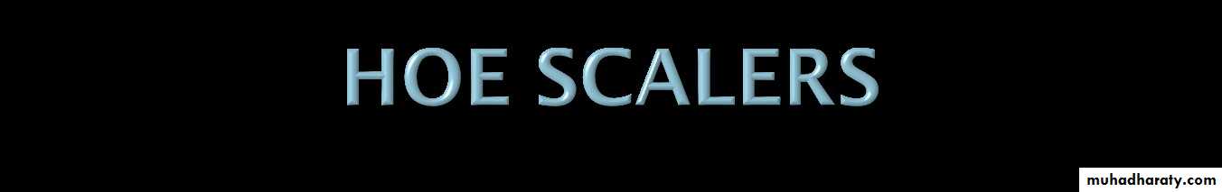 • • Hoe scalers are used for scaling of ledges or rings calculusBlade is bent at 99 angle