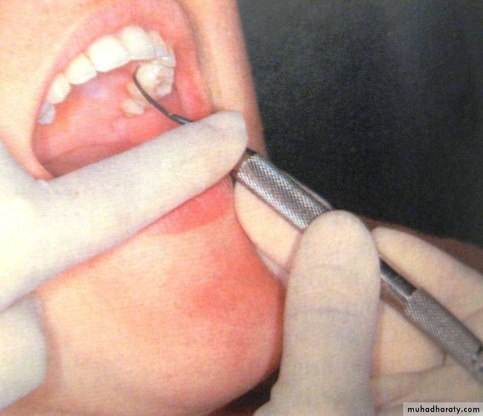 • Index finger is used for retraction of the lip