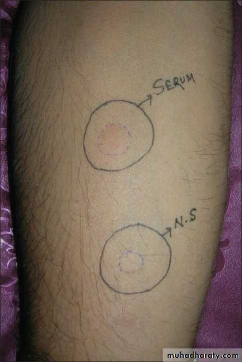 Anti-IgE receptor and to lesser extent anti-IgE antibodies are detected in sera of 25- 50% of patients with a chronic ordinary urticaria and this can be detected by autologous serum skin test(ASST)Autologous serum skin test