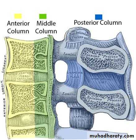 Denis Three column theory : The vertebral column is divided into three columns1. ANTERIOR2. MIDDLE3. POSTERIOR Columns