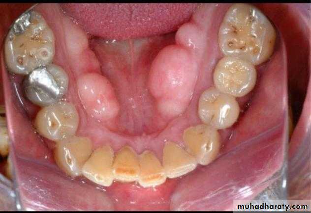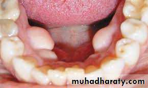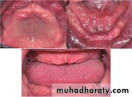 are bony protuberance on the lingual aspect of the mandible that usually occur in the premolar area. The origins of this bony exostosisare un certain and the growths may slowly increase in size occasionally extremely large tori interfere with normal speech or tongue function during eating. But this tori rarely require removal when they are present after the removal of lower teeth and before the construction of partial or complete dentures. It may be necessary to remove mandibular tori to facilitate denture construction.Soft tissue abnormalities:-