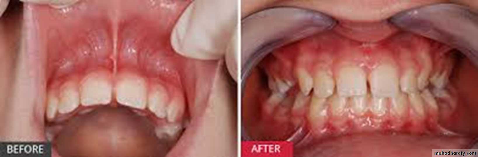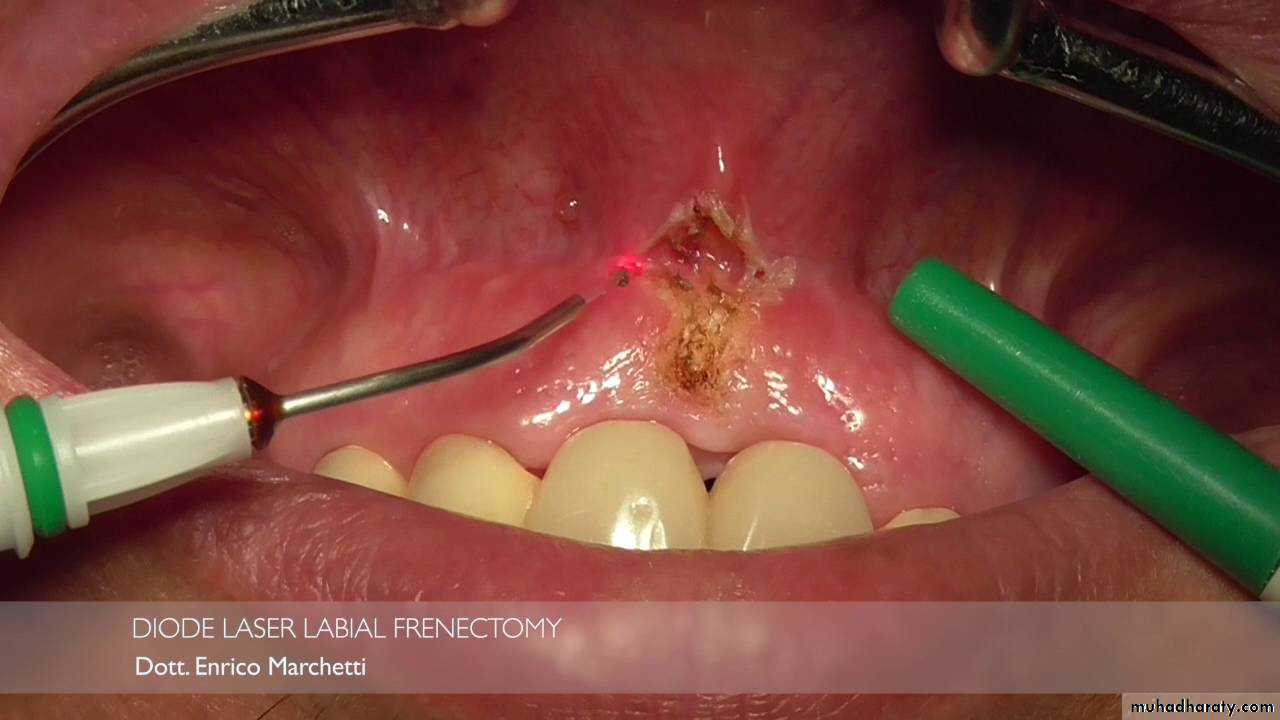labial frenum attachments consist of thin bands of fibrous tissue covered with mucosa extending from the lip and cheek to the alveolar periosteum. The level of frenal attachments may vary from the height of the vestibule to the alveolar ridge and even to the incisal papilla area in the anterior maxilla.Three surgical technique are effective in removal of frenal attachments:-