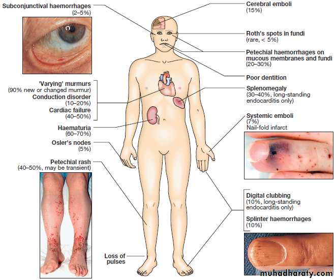 Extracardiac manifestations, such as vasculitis and skin lesions, are due to emboli or immune complex deposition