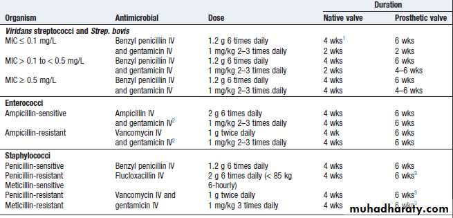 Antimicrobial treatment of common causative organisms in infective endocarditis