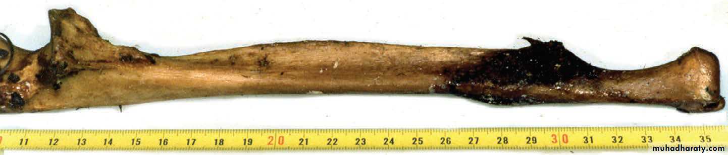 4) في سن 17-18 تلتحم النهايتان السفليتان للكعبر والزند كل مع عمده.