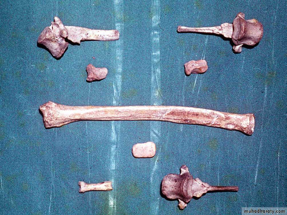 34• وعند الولادة يصبح عددها 450 بسبب اندماجها ببعضها. ويستمر اندماج المراكز التعظمية ببعضها حتى يصبح عدد العظام في هيكل الانسان البالغ 206 عظما فقط.