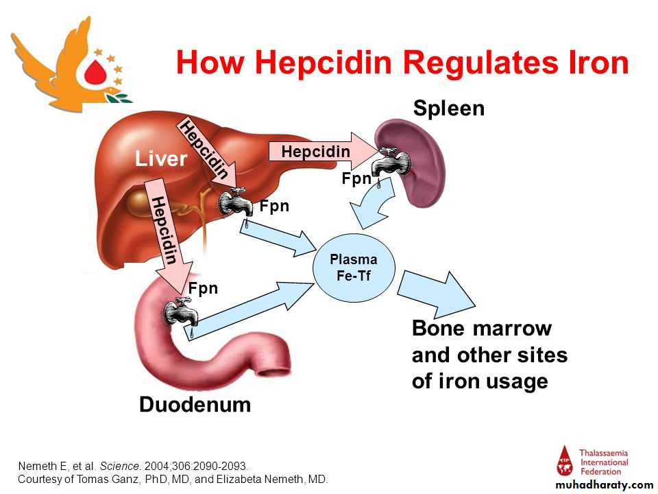 The pathogenesis of this anaemia appears to be related to :decreased release of iron from macrophages to plasma because of raised serum hepcidin levels. Hepcidin is a polypeptide produced by liver cells. It is the major hormonal regulator of iron homeostasis. It inhibits iron release from macrophages and from intestinal epithelial cells by its interaction with the transmembrane iron exporter, ferroportin. It accelerates degradation of ferroportin mRNA. Raised hepcidin levels therefore profoundly affect iron metabolism by reducing its absorption and release from macrophages. ( When iron stores are adequate or high, increased hepcidin expression inhibits intestinal iron absorption, release of recycled iron from macrophages and its transport across the placenta ). Hepcidin synthesis is increased by transferrin saturation and inflammation but reduced by increased erythropoiesis, erythropoietin, hypoxia and matriptase
