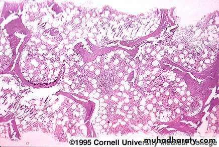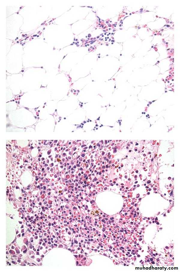 2. decreased marrow cellularity (< 25%)