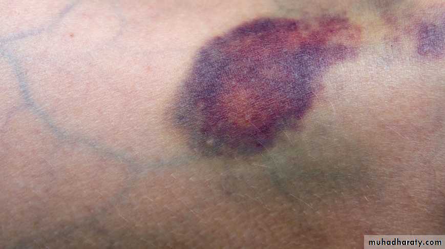 thrombocytopenia bruising (eg, ecchymoses, petechiae) on the skin, gum bleeding, or nosebleeds.