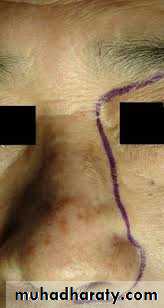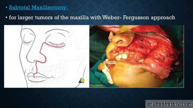 for larger tumors of the maxilla with Weber- Fergusson approach15