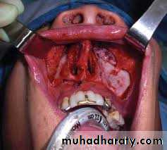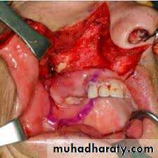 Partial Maxillectomy in malignant tumors of the floor of the maxillary sinus with spread toward the oral cavity or in the early malignant tumors of the maxilla, the procedure is done through the mouth and it requires removal of the lower half of the maxilla.