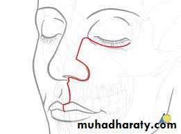 The upper cheek flap approach (the Weber-Ferguson incision and its modifications) is raised using a median upper lip split and carrying the incision around the nose with the corresponding mucosal incision in the upper gingivobuccal sulcus. It is required for resection of larger tumors of the hard palate and upper alveolus, particularly if they are posteriorly located.8