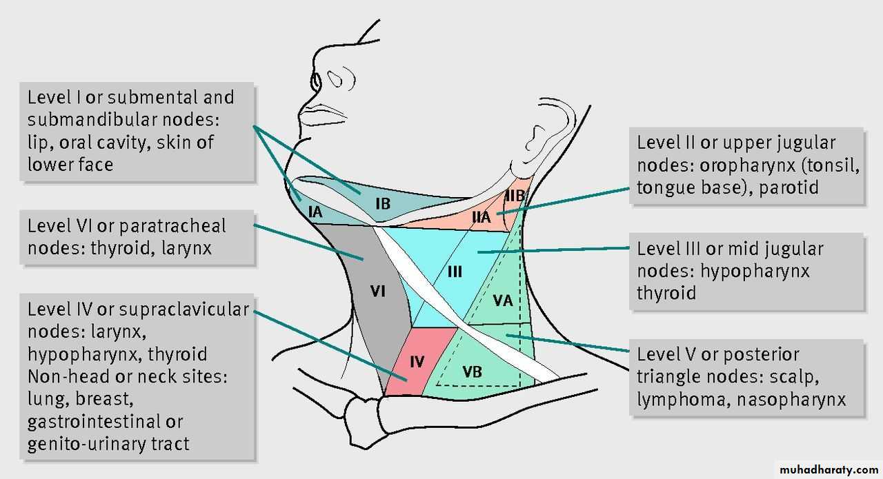 The head and neck drain into extensive network of cervical lymphatics, and this drainage pattern usually occurs in a predictable manner for each site. Knowledge of the anatomy of the regional lymphatic system is therefore important for clinicians treating patients with head and neck cancer.
