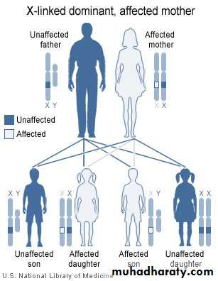 • The only X-linked dominant disorders are vitamin D-resistant rickets and Alport's syndrome (Hereditary glomerulonephritis with nerve deafness)