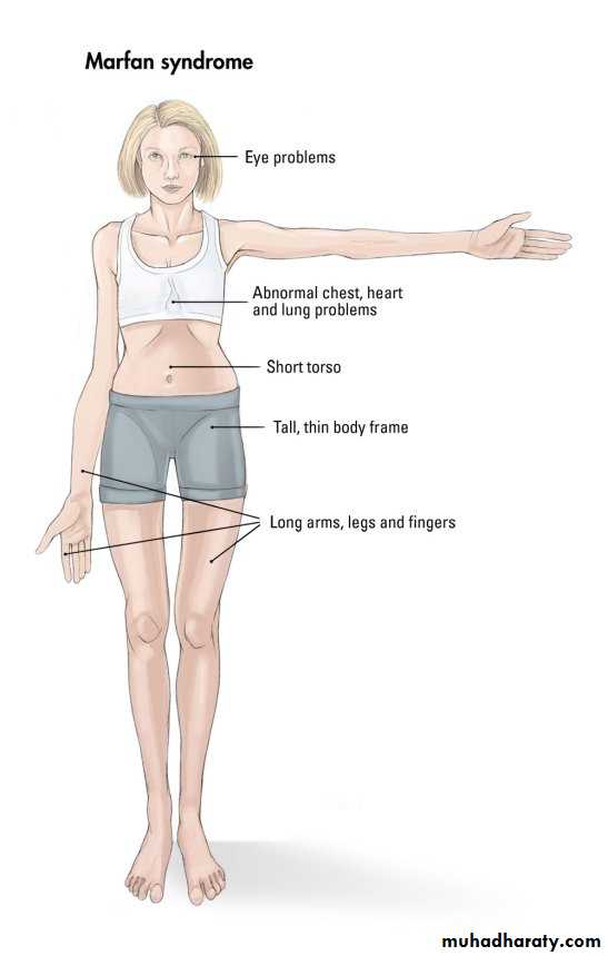 Autosomal dominant disorder of connective tissue that affects fibrillin 1 (a glycoprotein that is secreted by fibroblast) encoded by FBN1 gene (mapped on chr.15).Prevalence, 3 per 10 000 & 75% are familial.