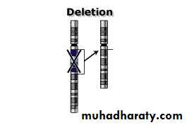 Involves loss of a portion of a chromosome. A single break may delete a terminal segment or two interstitial breaks which may result in loss of chromosome material between the breaks and reunion of the proximal & distal segments.Terminal (rare), result from single break in a chromosome arm producing a fragment with no centromere which is lost in next division.