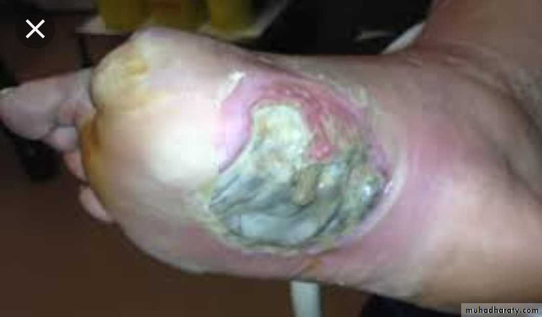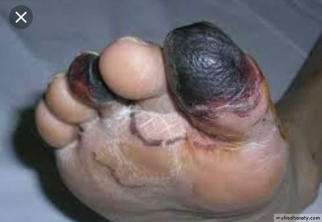 Ischemic necrosis of the lower limb is the most common example.