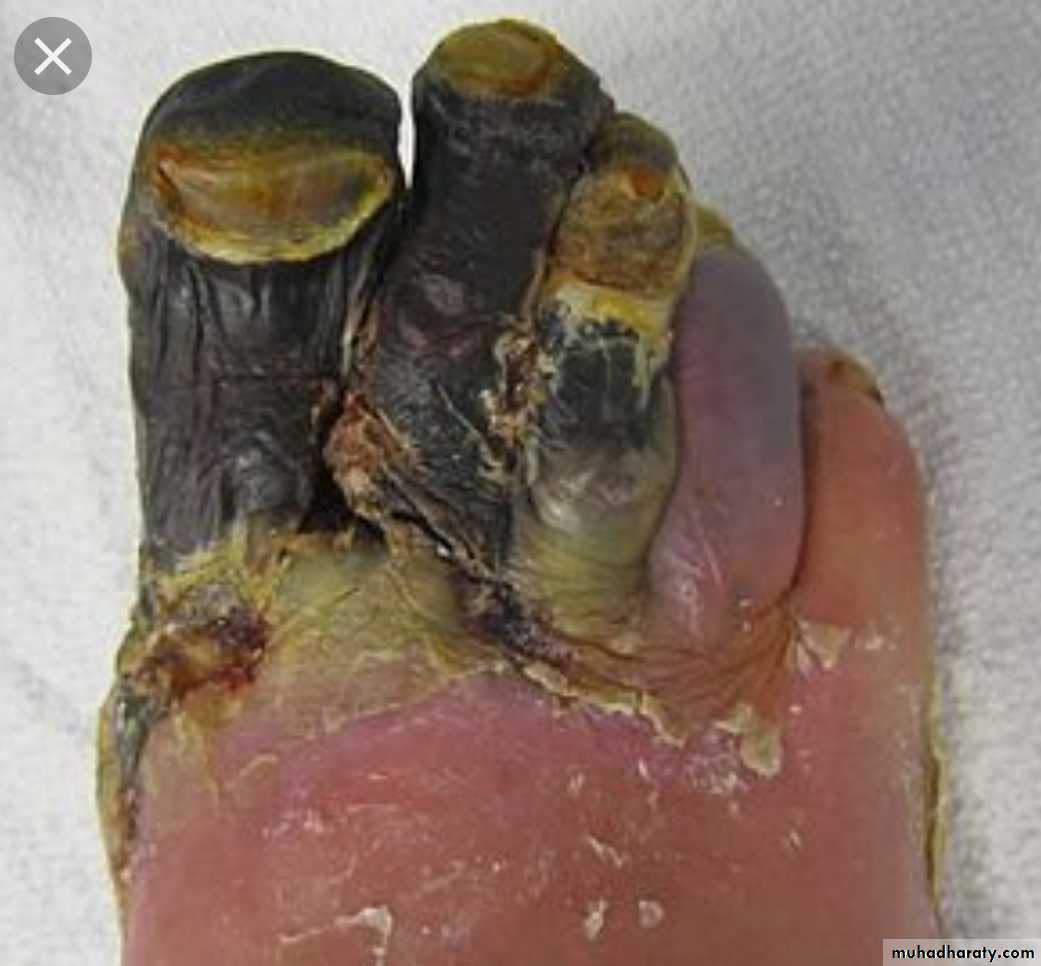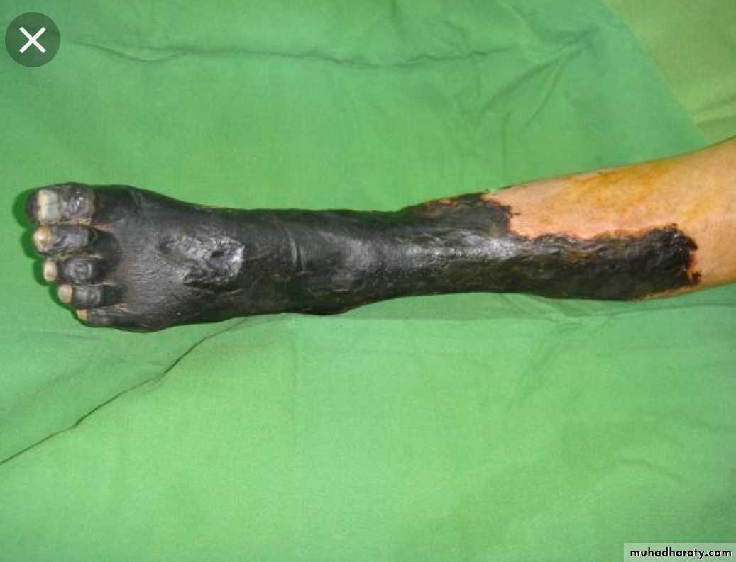 (necrosis with putrefaction)Types of gangrene