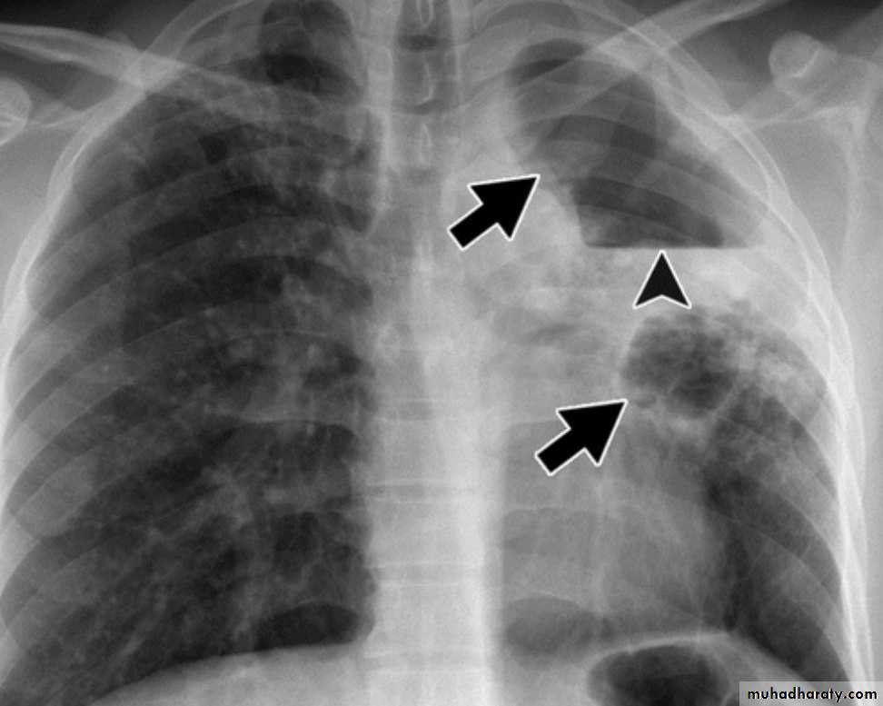 * or enter through bronchial tree leading to tuberculous bronchopneumonia or spread into the pleural cavity leading to pleural effusion.