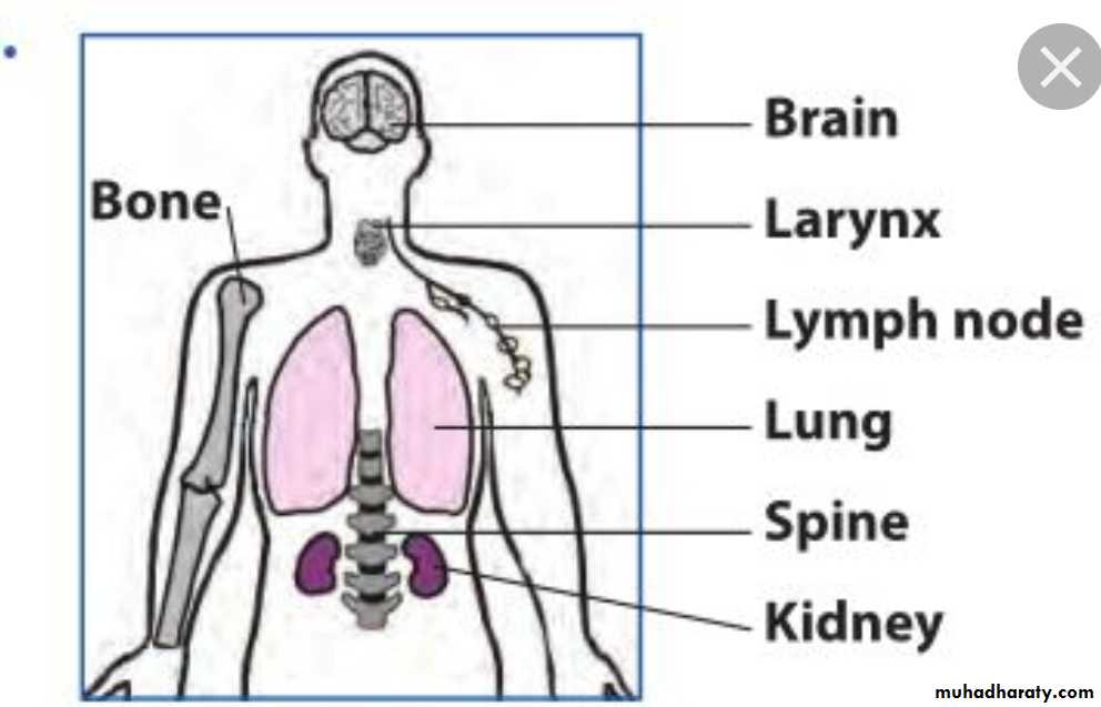 1- Miliary tuberculosis with multiple tubercles in numerous organs & tissues.2- Isolated metastatic organ lesions e.g., in kidney, bone, vertebra, joint & epididymis.