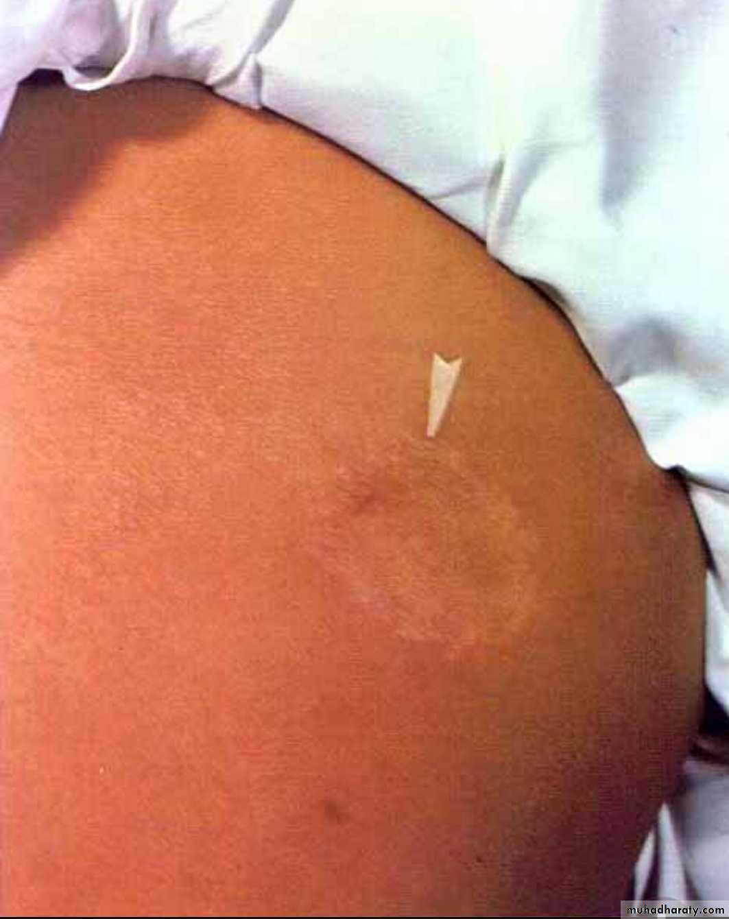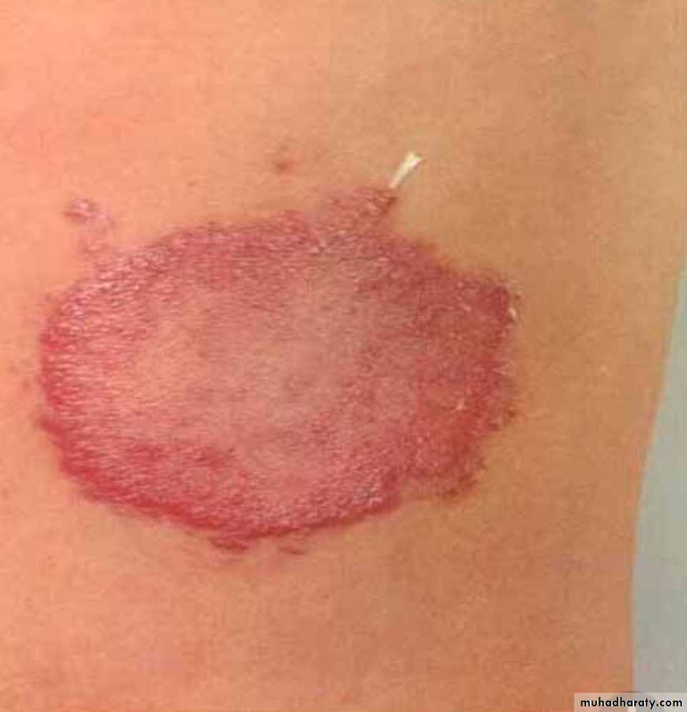 Localized skin lesion, consist of asymetrical anasthetic macule and palpable, lesions enlarge to become irregular in shape with indurated elevated hyperpigmented margins and depressed pale centers.Nerves are enclosed within the granulomatous reactions causing sometimes destruction of the nerve (small one) and this may be complicated by ulceration and deformity of the area supplied by the damaged nerve.