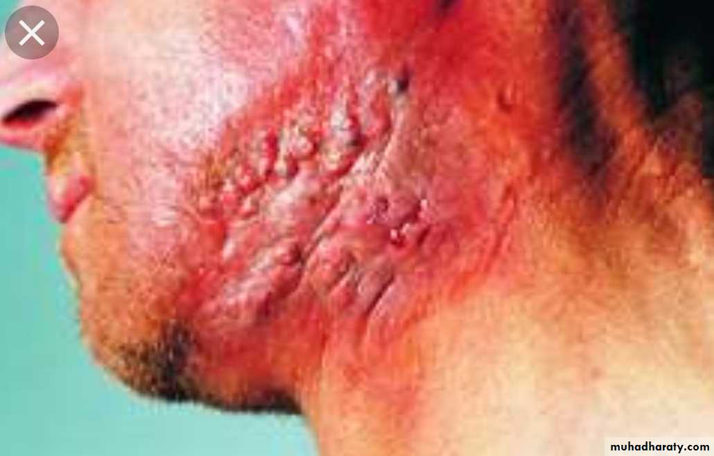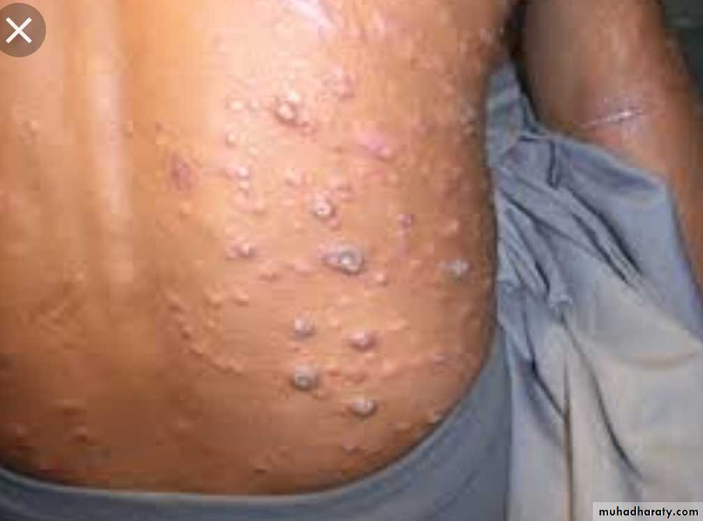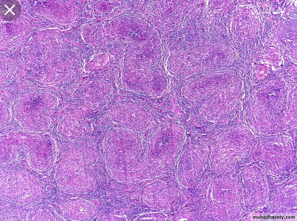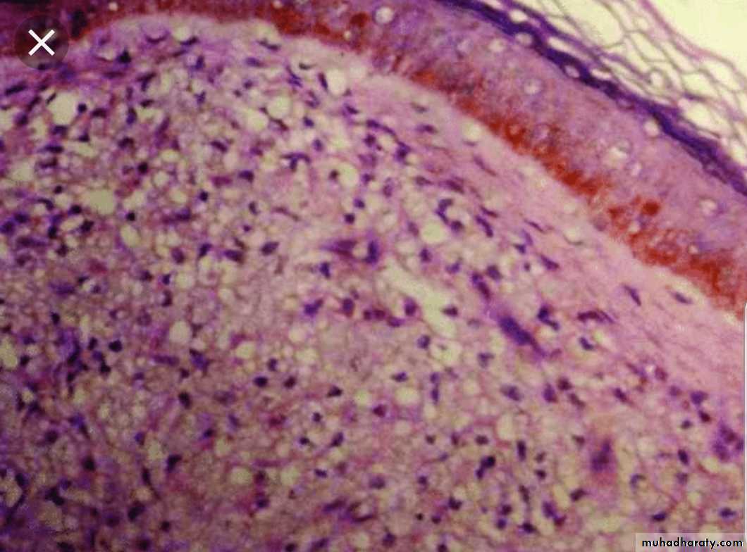 Peripheral nerves are involved symmetrically with trophic changes in hands and Feet.Microscopically: diffuse lesions containing foamy macrophages stuffed with large numbers of bacilli (lepra cells), lesions are also found in lymph nodes & in advanced cases in the liver spleen, testes (sterility) …