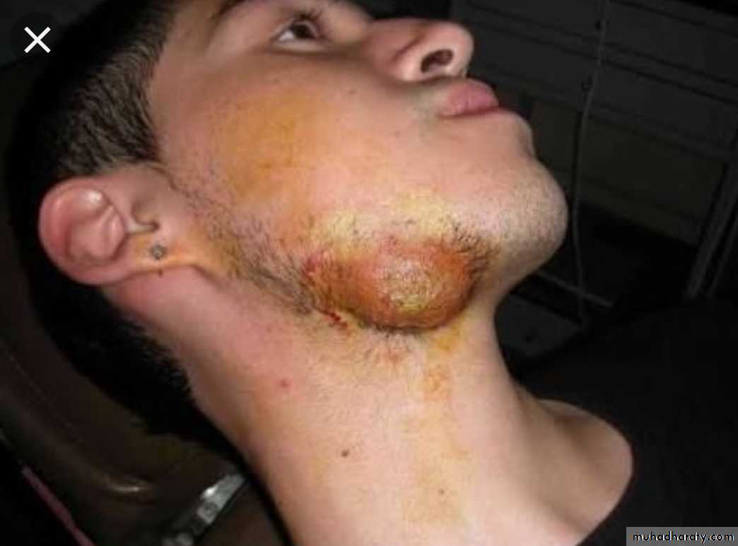 Infection produces firm masses containing numerous abscesses ( honeycomb abscesses) bearing colonies as yellowish granules (sulfur granules) with sinuses & fistulae.