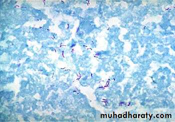 This is an acid fast stain of Mycobacterium tuberculosis (MTB).