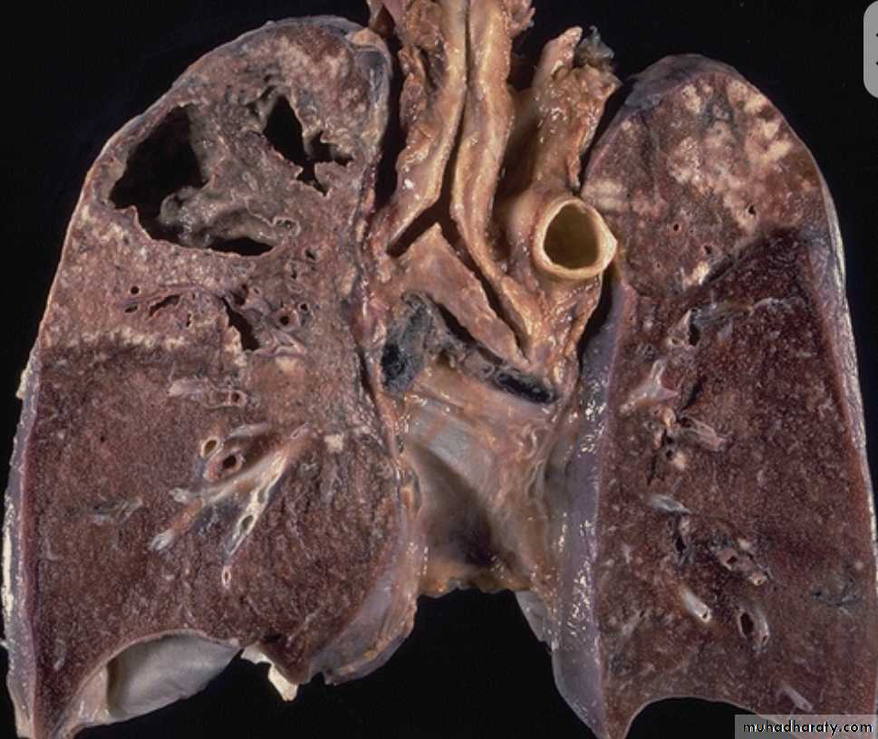 usually occurs at the apex of the lung with minimal lymph node involvement. There is marked damage in the lung parenchyma with cavity formation