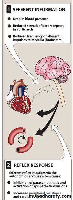 It maintain homeostasis within the body it required for life such as digestion and eliminations of waste (rest and digest), urination and defecation.Reflex arcs: decrease blood pressure cause pressure sensitive neuron such as baroreceptor in heart, venacava, aortic arch and carotid sinus send impulse to CV center in brain lead to reflex increase sympathetic out put to heart and cause compensatory increase blood pressure and tachycardia