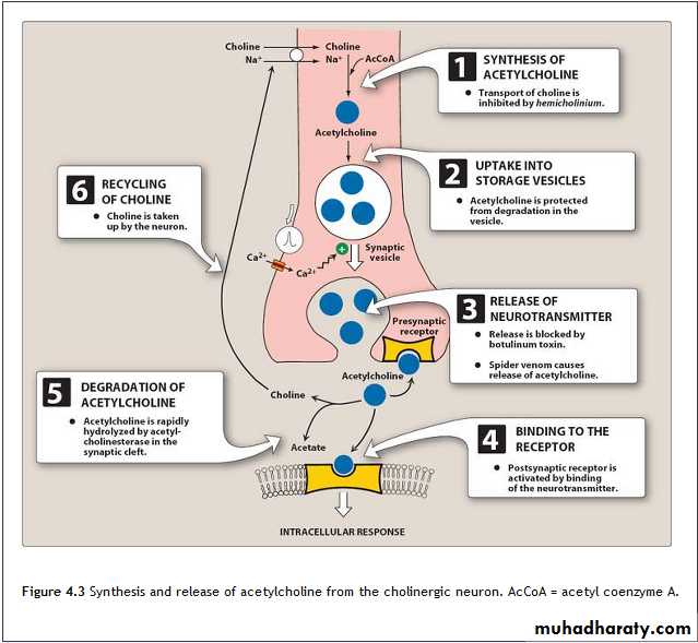It is a quaternary ammonium compound. It is a neurotransmitter of parasympathetic and somatic nerves as well as gangelia. It is not used therapeutically because of multiplicity of action and rapid inactivation by cholinestrases.