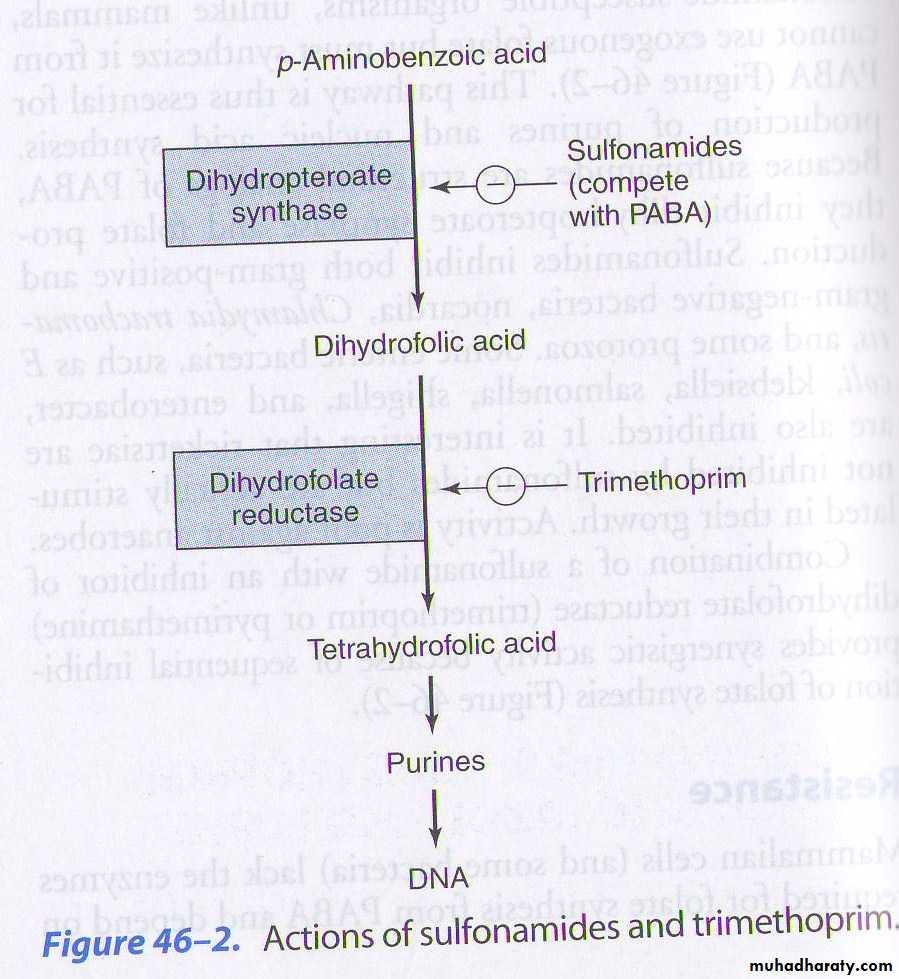 MOA OF TRIMETHOPRIM-SULFAMETHOXAZOLE1.Sulfamethoxazole inhibits dihydrofolate synthase.