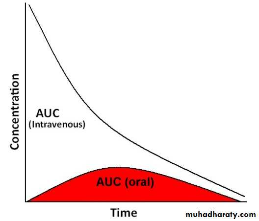 It is the amount of the drug which reaches the circulation in an active form after oral administration; this amount is the fraction of dose absorbed (F).Bioavailability = AUC oralAUC injected ×100 %