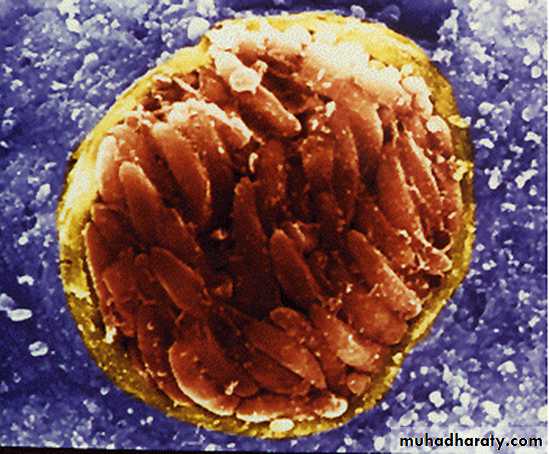 T. gondiiBradyzoite – A slower reproducing form, contained in tissue