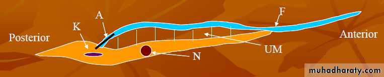 Varies in length (12 -75 microns).K is always anterior to the nucleus.