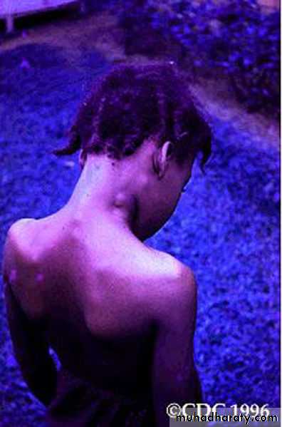 25The classic Winterbottom sign is clearly visible (ie, enlarged, nontender, mobile posterior cervical lymph node).