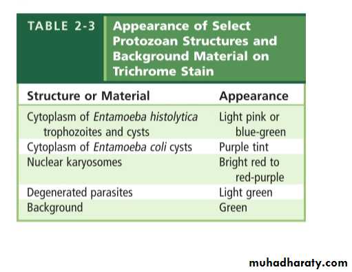 Trichrome:- the most widely used permanent stain.Iron haematoxylin.