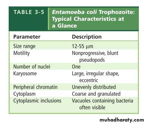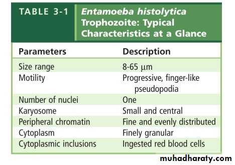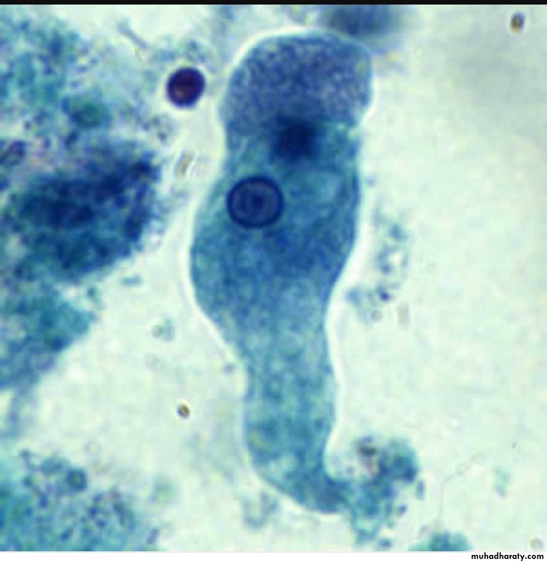 • The typical amebic stool contain blood , mucus, few WBC , and bacteria.