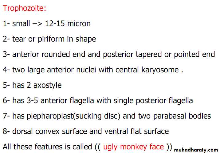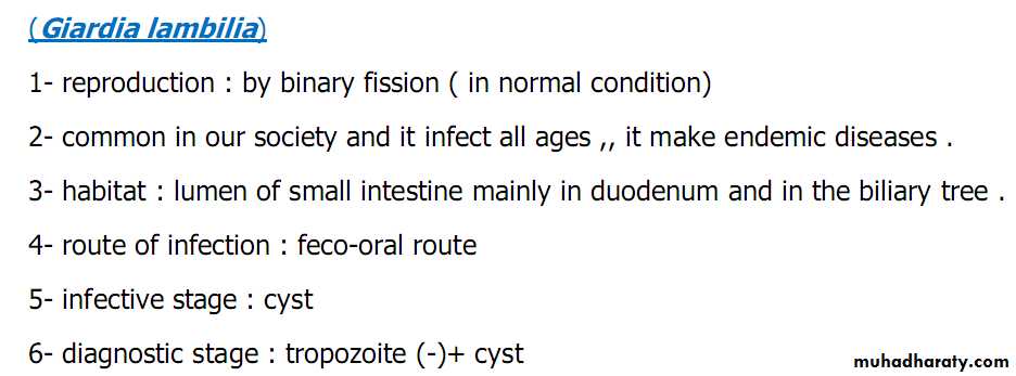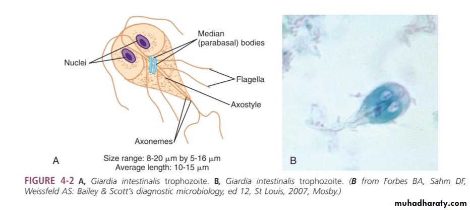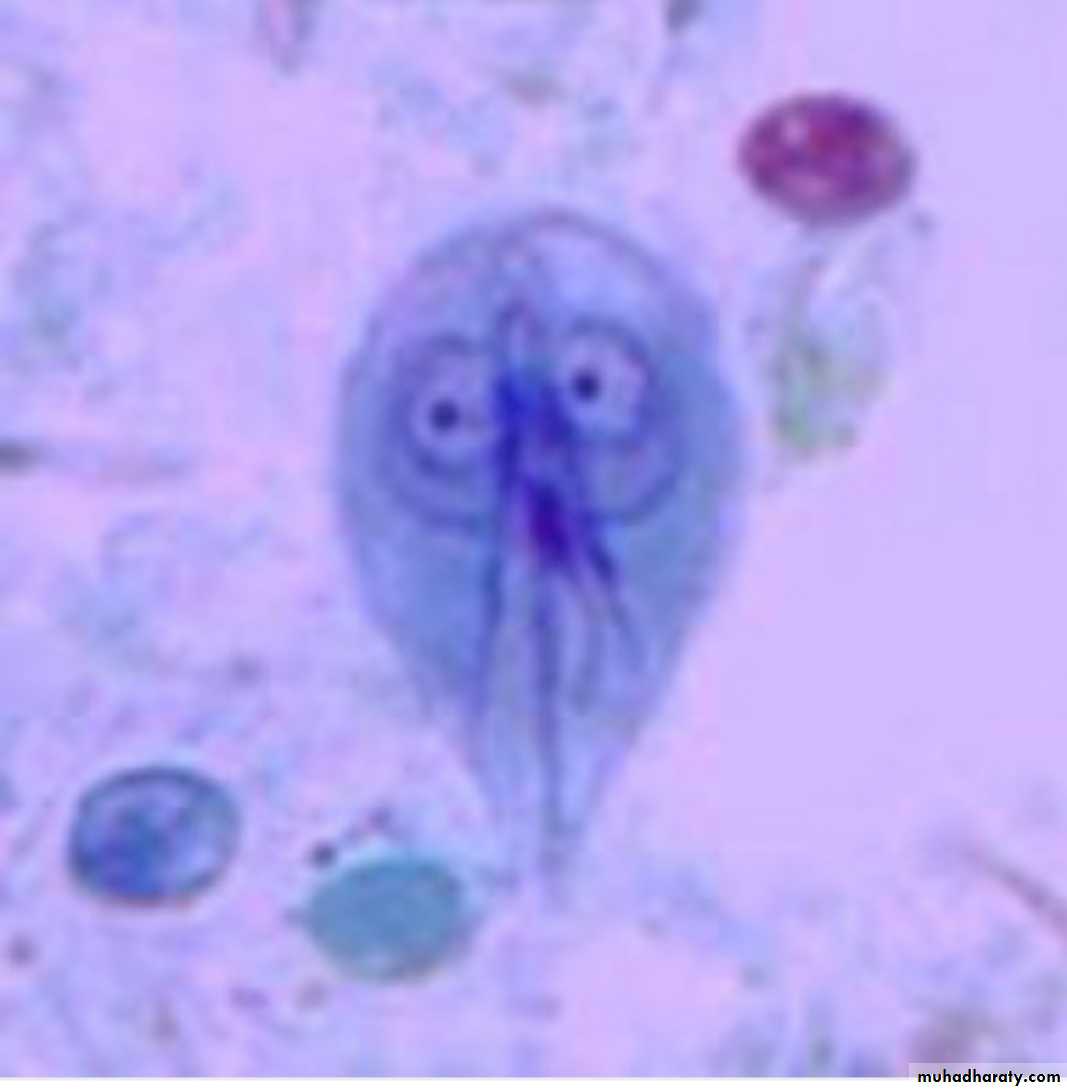 Is a flagellated protozoan that infect the duodenum and small intestine (jejunum & upper ileum). Range from asymptomatic colonization to acute or chronic diarrhea and malabsorption.Morphology