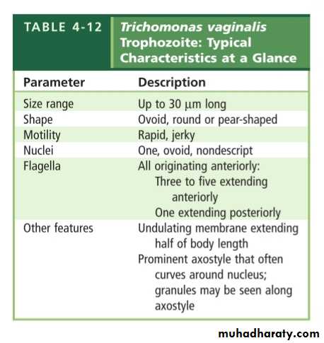 • Saline wet preparation (specimen of choice is urine,vaginal discharge and urethral discharge).• Pap smears.