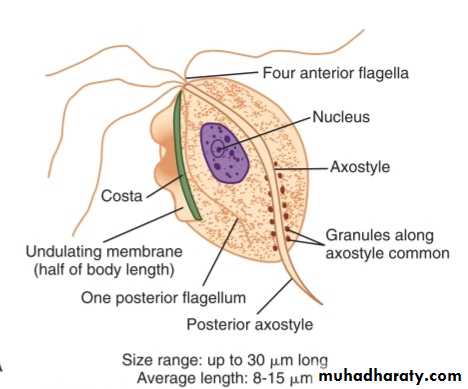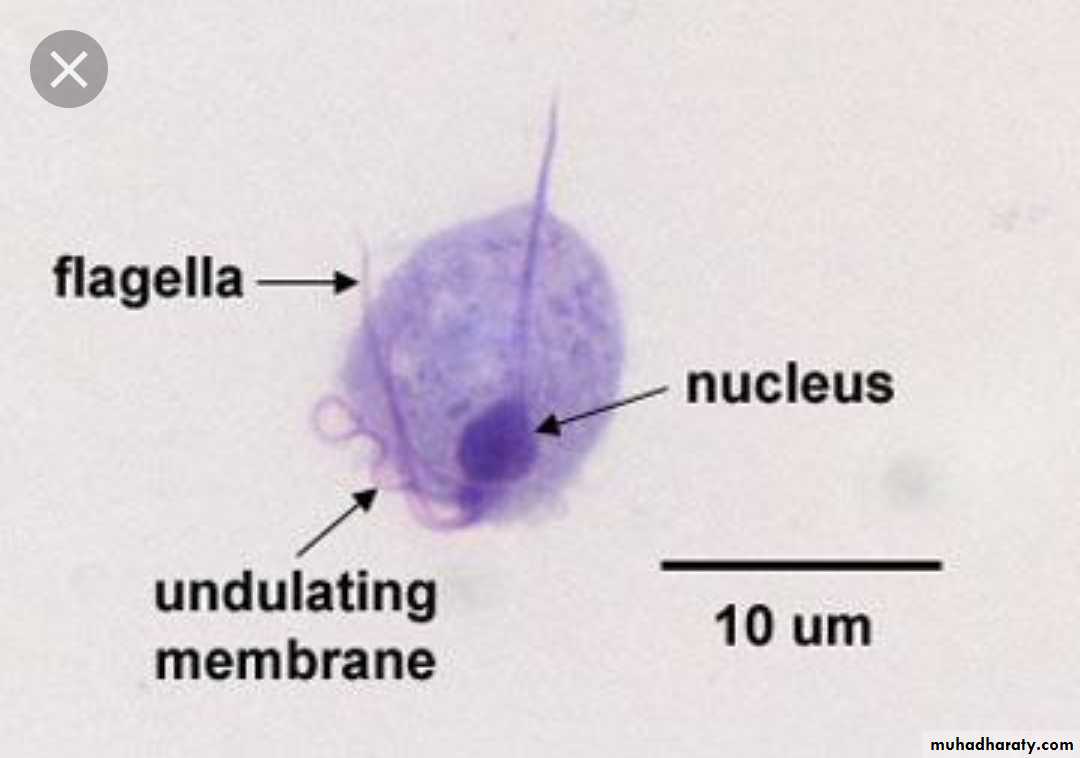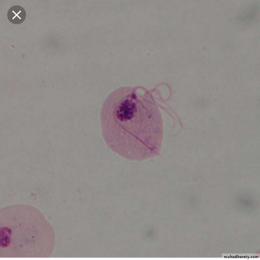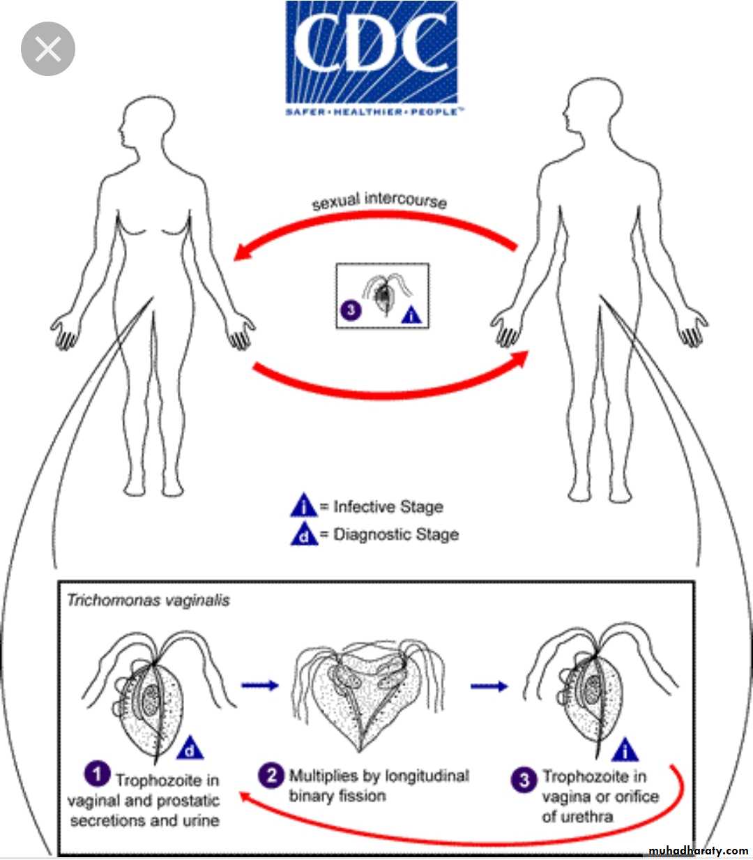 T.vaginalis trophozoites reside on the mucosal surface of the vagina in infected women.The growing trophozoites multiply by longitudinnal binary fission and feed on local bacteria and leukocytes.