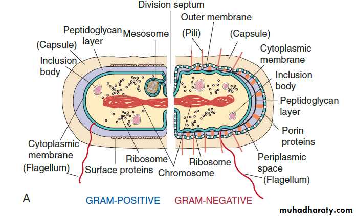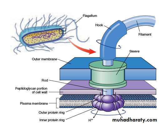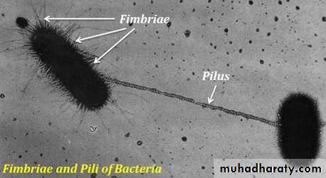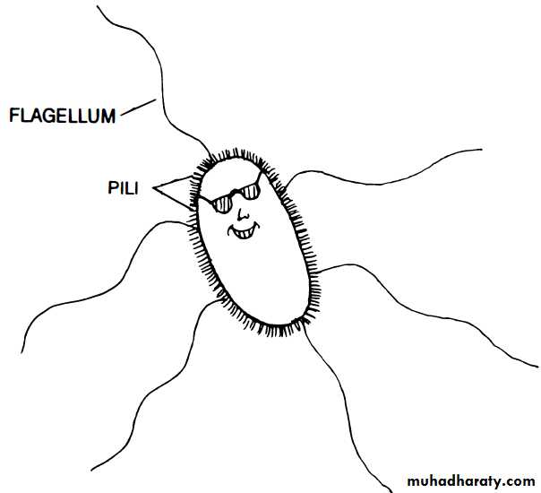 • pili / fimbriae: most gram negative bacteria.