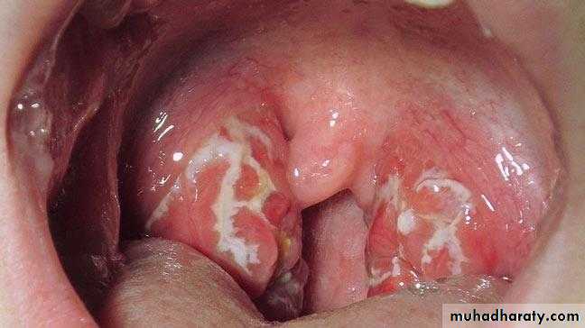 In older children and adults, the disease is more acute characterized by high fever, intense nasopharyngitis, tonsillitis, with swelling and redness of the mucous membranes. Purulent exudates are usually manifested; tender, enlarged, and painful cervical lymph nodes. Similar clinical picture can be observed in infections with Diphtheria, Gonococci, and Adeno virus.