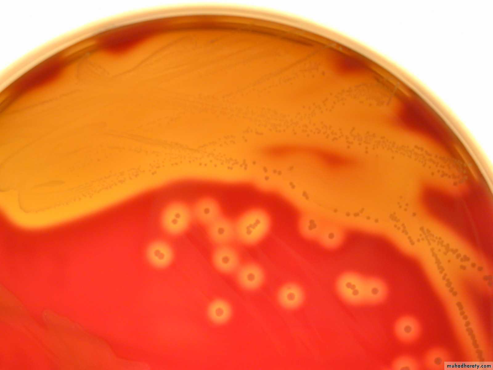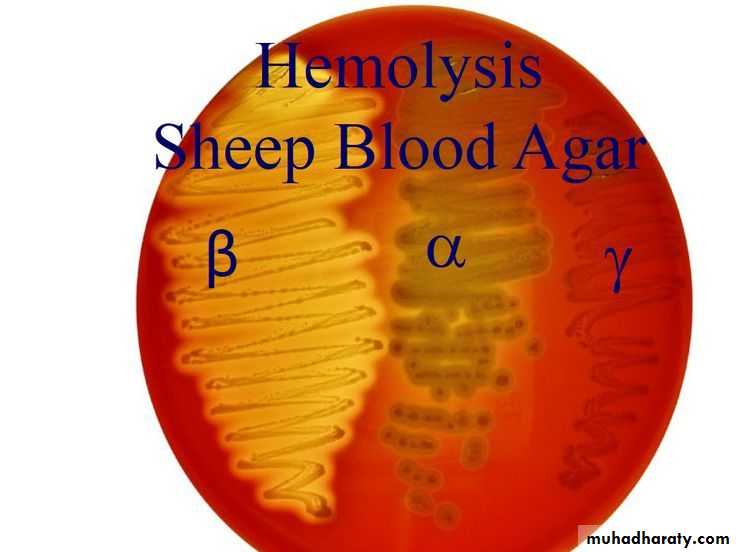 • β Hemolytic: (Complete or yellowish hemolysis), e.g. Streptococcus agalactiae and Streptococcus pyogenes.