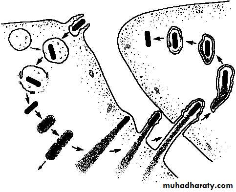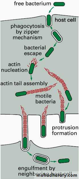 These filopods are ingested by adjacent epithelial cells, macrophages, and hepatocytes, the listeriae are released.