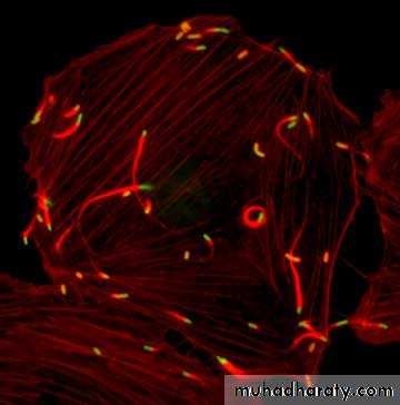 The organisms induce a reorganization of cellular actin such that short filaments and actin-binding proteins adhere to the bacteria, creating a comet like “tail.”