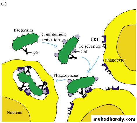 Phagocytic cells have receptors for C3b and C4b component, therefore opsonization and subsequent phagocytosis are much enhanced by the activated complement.