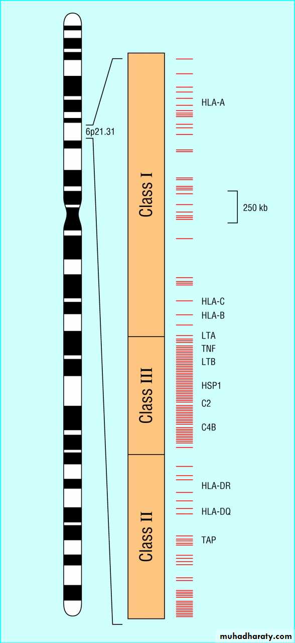A large highly polymorphic genomic region that control the types of cell antigens called MHC or HLA antigens.MHC : genes that determine the tissue compatibility between individuals.